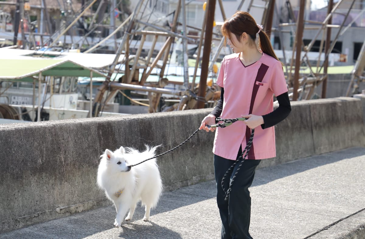 散歩のついでに立ち寄る。そんな日常のコミュニケーションから、病気の小さな予兆を見逃さずに発見できるかもしれません。各地の病院で積んできた経験を活かし、大好きな地元・明石の動物たちの健康を守るために全力を尽くします。明石港のそば、海色の動物病院でお待ちしています。
