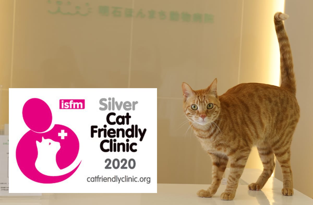 当院では、デリケートな猫ちゃんが少しでもリラックスして受診できる環境を作るため、猫専任の国際的な獣医療組織(ISFM)が定めた「キャット・フレンドリー・クリニック(CFC)」の認定を、明石市の個人病院で初めて取得しました。